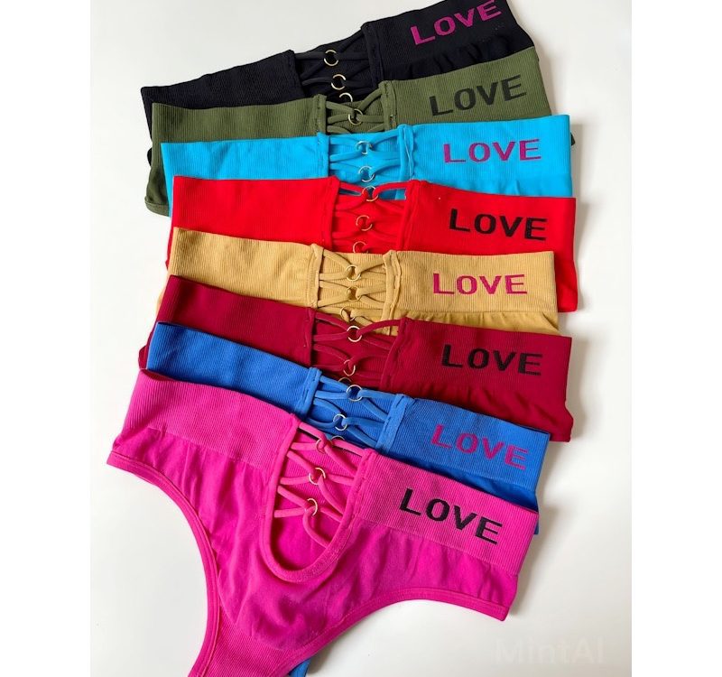 ☑️شرت بکلس love لیزری/تور لطیف سایزM مناسب سایز۳۴،۳۶ عرض۲۷ با کشسان ۳۹ فاق ۱۸ با کشسان ۲۵ سایز L مناسب