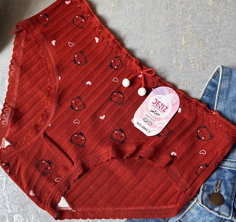 جنس نخ پنبه اندازهچک شود مناسب سایز۳۸ تا ۴۲ عرض 31 با کشسان حدود 52 فاق 22 با کشسان 29 پک ۵طرح متفاوت