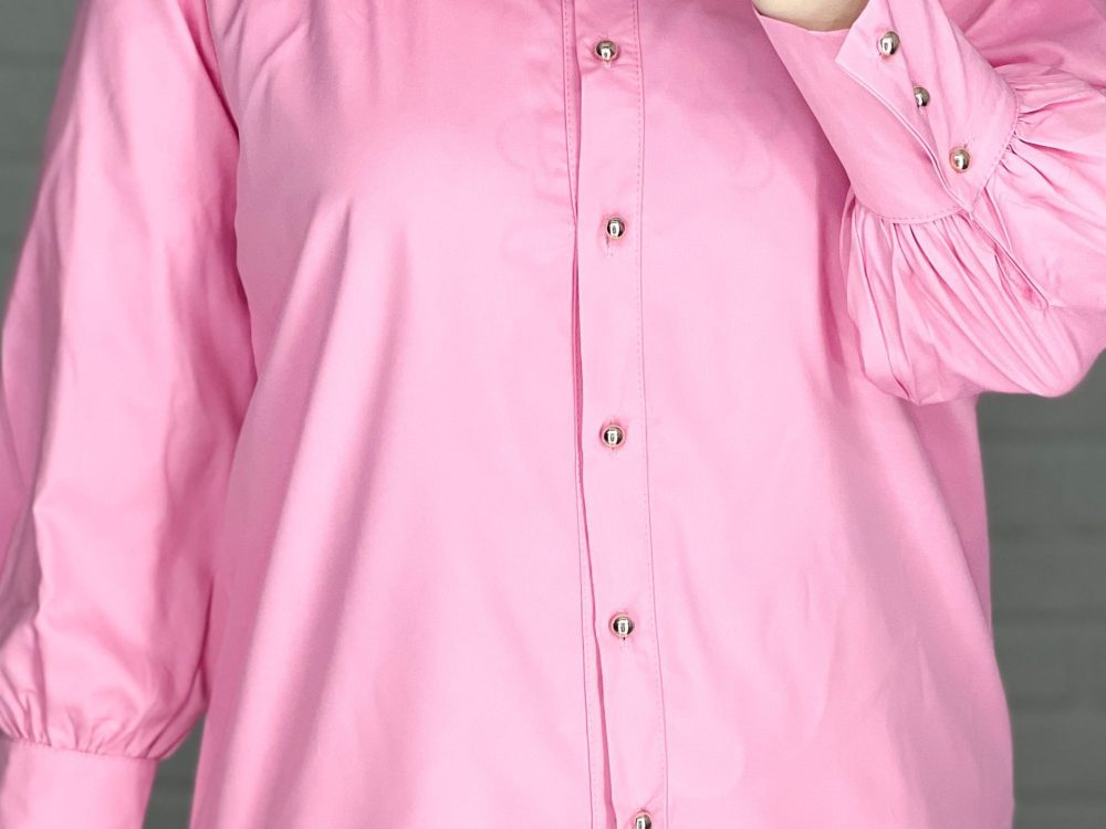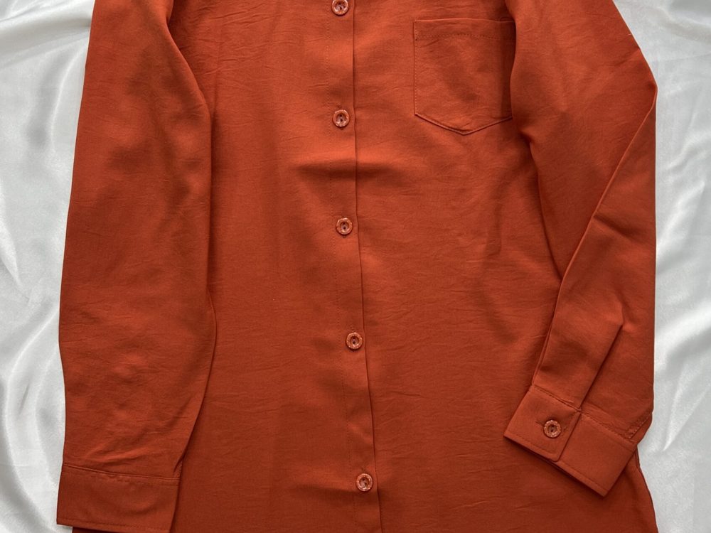 برش هلالي جلوي شوميز حالت ساتن داره
